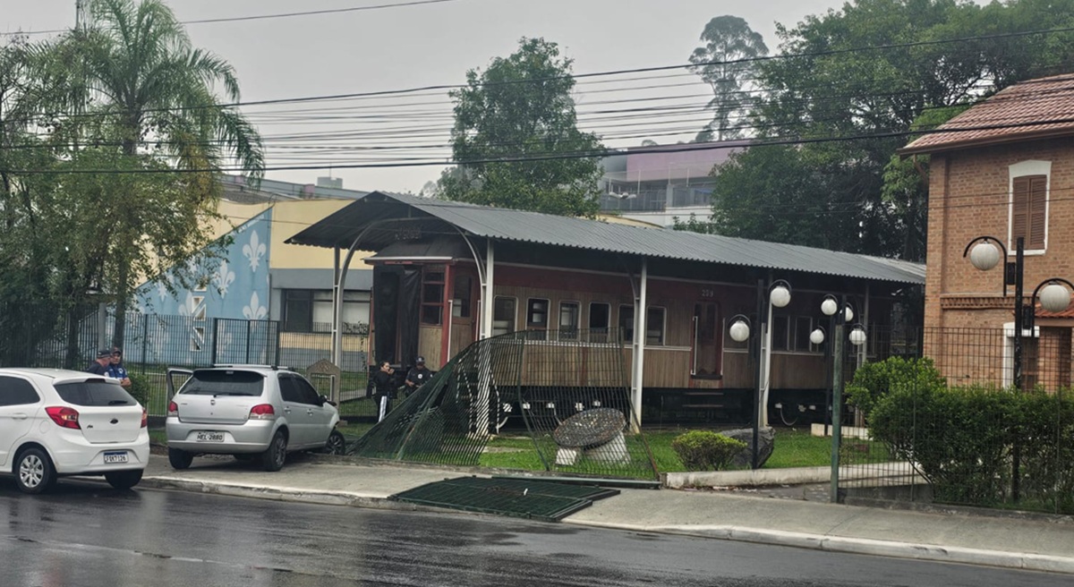 Veículo atingiu o cercado que protege o vagão histórico; ninguém ficou ferido e o patrimônio…